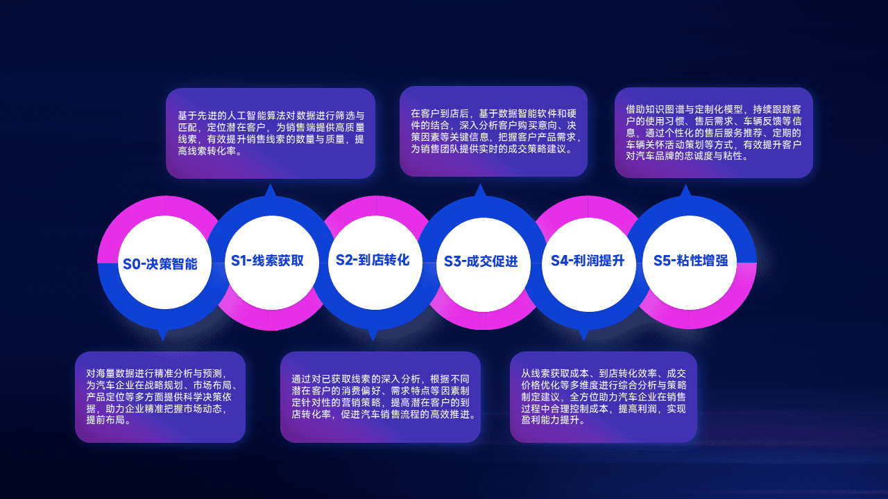 通过拓宽潜在客户来源、、优化线索分配并提高到店转化率,,,,以增强销售效率。。。同时,,,利用线索数据不断优化分析模型,,有效提升转化率,,,,扩大营销影响力。。